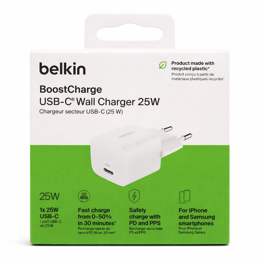 Optez pour la performance et la fiabilité avec le chargeur secteur USB-C 25W Belkin BoostCharge. Conçu pour offrir une recharge rapide et sécurisée, il alimente efficacement vos appareils compatibles à la maison, au bureau ou en déplacement.